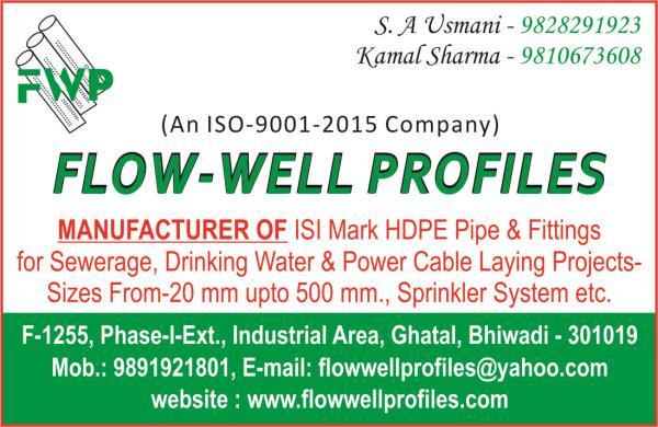 Mfrs. Of All Type PVC Pipes, HDPE Pipes & Fittings